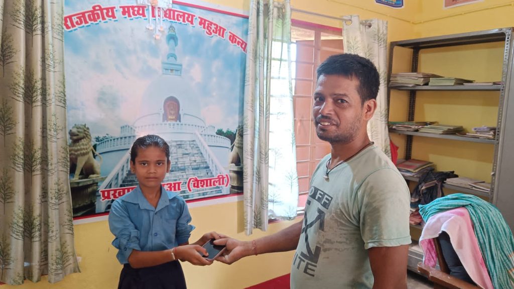 महुआ (वैशाली )आपने एक कहावत जरूर सुनी होगी : “ईमानदारी सर्वोत्तम नीति है” इस ब्रह्म वाक्य पर चलते हुए महुआ मध्य विद्यालय ,कन्या की तीसरी कक्षा की छात्रा दीपांशु कुमारी ने ईमानदारी की मिसाल पेश की। बताते चले की चकमजाहिद गांव के रामप्रवेश कुमार की पुत्री दीपांशु प्रत्येक दिन की तरह अपने घर से विद्यालय आ रही थी, रास्ते में उसे एंड्राइड मोबाइल गिरी हुई मिली ।वह मोबाइल को अपने साथ लेकर विद्यालय आई और आते के साथ अपने प्रधानाध्यापक के कक्ष में उस मोबाइल को जमा कर दी। प्रधानाध्यापक एवं अन्य शिक्षकों ने मोबाइल धारक को मोबाइल की जानकारी दी ।मोबाइल धारक दौड़े दौड़े विद्यालय पहुंचे, जहां पर दीपांशु के हाथों से ही उन्हें मोबाइल वापस किया गया। मोबाइल धारक भी गद्दोपुर के संतोष पंडित बताए जाते हैं ।इस नन्ही सी बच्ची की ईमानदारी की चर्चा विद्यालय के शिक्षकों, उनके सहपाठियों के साथ-साथ क्षेत्र के सभी लोगों के जुबान पर सिर चढ़कर बोल रही है ।आज के जमाने में जहां आधुनिक बच्चों द्वारा मोबाइल से चिपके नजर आते हैं, वही इस नन्ही सी बच्ची ने महंगी मोबाइल को भी वापस करना मुनासिब समझा। अपने शिक्षकों के माध्यम से मोबाइल धारक को वापस कर अपने गुरुजनों का आशीर्वाद प्राप्त किया। । विद्यालय के प्रधानाध्यापक राम लगन भारती, शिक्षक सत्येंद्र कुमार ,अमित कुमार सहित अन्य ने अपने विद्यार्थी के सर्वोत्तम कार्य के लिए भूरी भूरी प्रशंसा करते हुए उज्जवल भविष्य की कामना की है।
