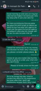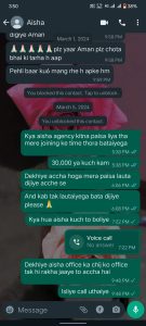 जिसका सबूत व्हाट्स एप्प्स स्क्रीन शॉट सूत्रों के अनुसार ज्ञात हुआ है कि अमन कुमार लैब टेक्नीशियन जून 2023 को इंटरव्यू के लिए पहुचे थे। हमे इंटरव्यू के लिए कार्यालय पहुचने में थोड़ा डेर हो गया था। तो लेडीज डाटा ऑपरेटर सह आफिस सहायक आयसा सिंह ने कहा आपका नौकरी जॉइनिंग मै करवा दूंगी। तीस हजार रूपीए लगेगा। तीस हजार रुपये एक बार मे नही देना होगा।