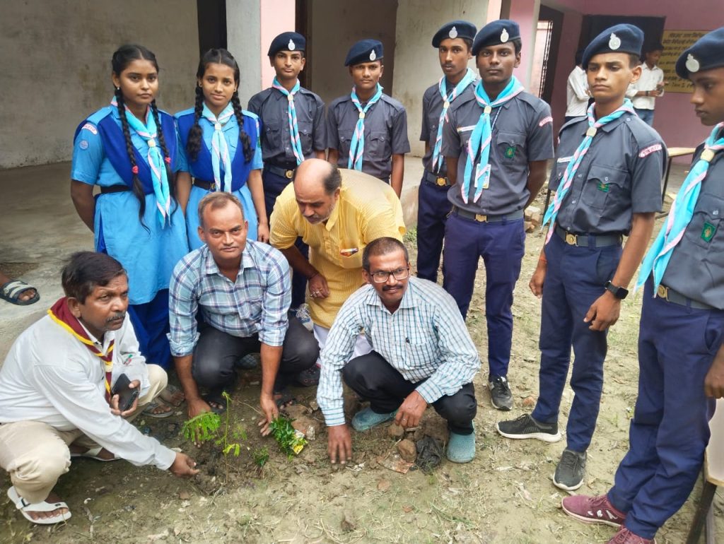बिहार पृथ्वी दिवस के अवसर पर स्काउट गाइड ने विद्यालय प्रांगण में किया वृक्षारोपण