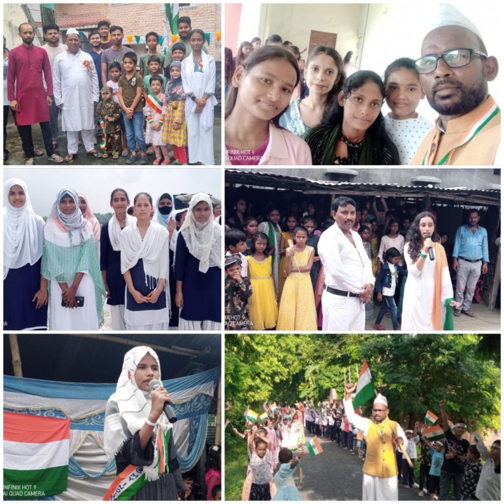 वैशाली सरकारी एवं गैर सरकारी स्कूलों में एवं सरकारी गैर सरकारी कार्यालय में 77वां स्वतंत्रता दिवस बड़े ही धूमधाम से मनाया गया तीन रंगों का तिरंगा आसमान में लहराते हुए झंडा तोलन किया गया तथा सरकारी एवं गैर सरकारी स्कूलों में छात्र-छात्राओं ने रंगारंग कार्यक्रम को प्रस्तुत कर आए हुए अतिथि एवं अभिभावक गण का मन मोह लिया ज्ञात हो कि चेहरा कलां प्रखंड अंतर्गत एनपीएस मोहम्मदपुर टोल सेहान में एवं कैरियर कोचिंग सेंटर सहन में एवं इंटरमीडिएट कॉलेज सेहान एवं मध्य विद्यालय सेहान ,उत्क्रमित उर्दू फतेहपुर जलाल ,उत्क्रमित हाई स्कूल छपरा , स्टार कोचिंग सेंटर बहावलपुर में कार्यक्रम को प्रस्तुत कर मन मोह लिया इस अवसर पर अमीर उल हक ,अनीता सिंह ,कुमारी अनिता, कुमारी ज्योति ,शमा प्रवीण ,एजाज आदिल शाहपुरी, बादल कुमार , बरज किशोर सिंह सेहान , शशि सिंह सेहान , इकराम उल हक , तजमुल हुसैन , समेत सैकड़ो शिक्षक एवं शिक्षिकाएं इस राष्ट्रीय त्योहार में उपस्थित थे साथ ही न्यू दिल्ली बटला हाउस में इमाम अंसारी , फूल गनी अंसारी , मोहम्मद अयान, मोहम्मद फ़ज़ल , नैय्यर आलम , इमामुद्दीन अंसारी , मोहम्मद फरीद , आयात फूल गनी अंसारी , दानिश रजा , फारिश नेयाज के नाम शामिल हैं साथ ही छात्र एवं छात्राओं में पल्लवी कुमारी, खुशी कुमारी, सबा परवीन, खुशनुमा परवीन, रिम झिम परवीन, जररीन सगीर, नाजिया परवीन, अभिलाषा कुमारी , प्रशंसा कुमारी , स्नेहा कुमारी , सोनम कुमारी , आरती कुमारी , अनुराग कुमार , शमशाद आलम, एजाज आलम , अनिकेत कुमार , आफरीन परवीन , नजराना खातून , साजदा खातून , अंकित कुमार , रोशन कुमार , इत्यादि के नाम शामिल हैं।