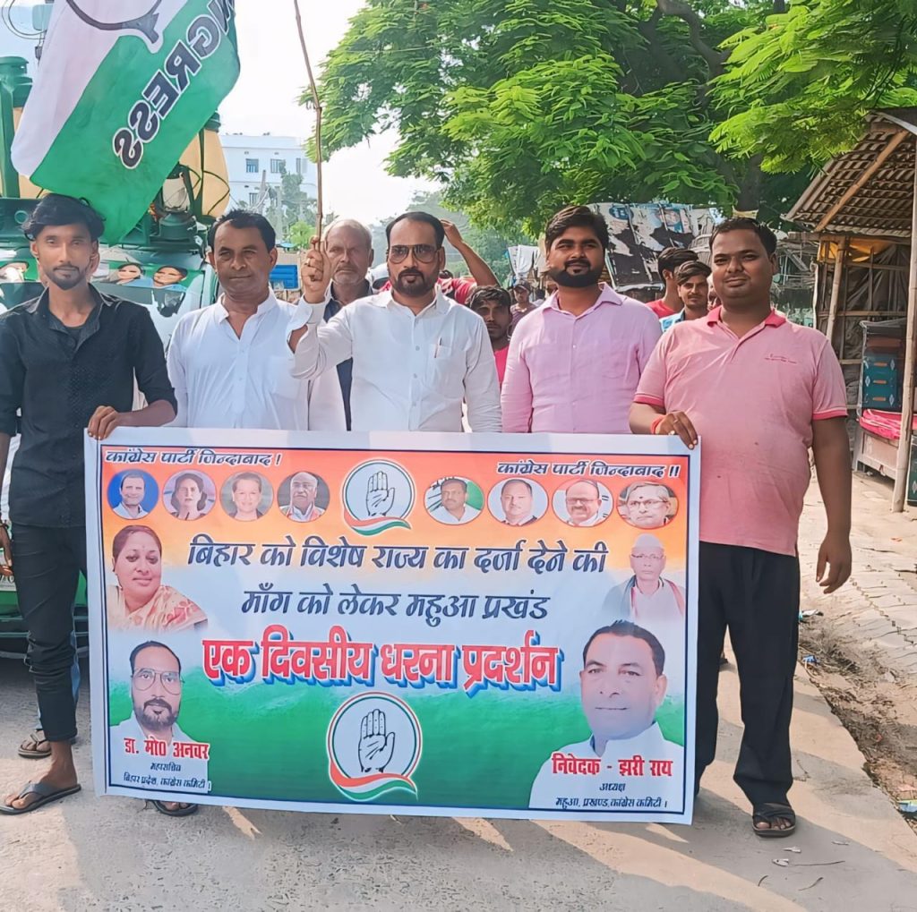 प्रदेश कांग्रेस कमेटी के आह्वान पर बुधवार को महुआ प्रखंड कांग्रेस कमेटी द्वारा बिहार को विशेष राज्य की दर्जा देने की मांग को लेकर एकदिवसीय धरना प्रदर्शन किया गया।