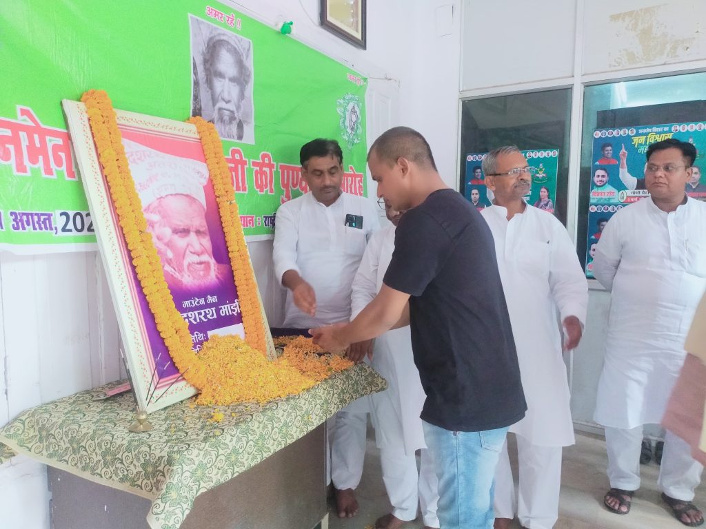 राजद प्रदेश कार्यालय पटना में माउंटेन मैन” दशरथ मांझी जी की पुण्यतिथि पर श्रद्धांजली समारोह का आयोजन किया गया