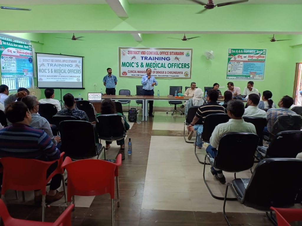 डेंगू एवं चिकनगुनिया के इलाज हेतु जिला अंतर्गत सभी चिकित्सा पदाधिकारियों का एक दिवसीय प्रशिक्षण स्थानीय जीएनएम ट्रेनिंग स्कूल में आयोजित किया गया। जिसमें जिला भीबीडी नियंत्रण पदाधिकारी डॉ रवीन्द्र कुमार यादव तथा सदर अस्पताल के डॉ राजीव कुमार द्वारा डेंगू तथा चिकनगुनिया के क्लिनिकल मैनेजमेंट को विस्तार से बताया गया। डा यादव ने डेंगू के मरीज को प्रारंभिक अवस्था में ही चिन्हित कर समुचित इलाज के गुर बताये ताकि चिकित्सक ससमय सही उपचार प्रारंभ कर सके और जटिलताओं को रोका जा सके। सदर अस्पताल में 10 बेड तथा सभी प्रखंडों में 2 बेड का डेंगू वार्ड बनाया गया है। उन्होंने निदान के साथ ही रोगियों को प्रतिवेदित करने और व्यापक निरोधात्मक कार्रवाई प्रारंभ करने पर भी बल दिया ताकि डेंगू के प्रसार को रोका जा सके। डॉ यादव ने बताया कि बरसात के मौसम में डेंगू फैलाने वाले एडिस मच्छर घरों के आसपास बिखरे टूटे फूटे बर्तनों, गमलों, टायर, छोटे छोटे प्लास्टिक या कागज के डिस्पोजेबल कप, नारियल के खोपरे आदि में जमा बारिश के पानी में अंडे देते हैं जो एक सप्ताह में मच्छर बन जाते हैं। इसे रोकने के लिए घरों के आस पास, छतों पर या घर के अन्दर पानी जमा न होने दें और सप्ताह में दो बार पानी को बदलते रहें। एडिस मच्छर साफ पानी मे पनपता है और दिन मे ही काटता है। कार्यशाला का शुभारंभ नव अधिसूचित क्षेत्रीय अपर निदेशक डॉ।के के झा एवं जिला भीबीडी नियंत्रण पदाधिकारी डॉ रवीन्द्र कुमार यादव व सदर अस्पताल की उपाधीक्षक डा सुधा झा ने दीप प्रज्वलित कर किया। कार्यशाला में सभी प्रखंडो के 48 चिकित्सकों ने भाग लिया।
