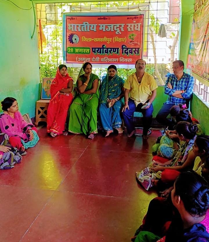 समस्तीपुर भारत माता की जय वंदे मातरम बीएमएस अमर रहे अमर रहे राष्ट्र के हित में करेंगे काम काम का लेंगे पूरे दाम कौन बनाता हिंदुस्तान भारत का मजदूर किसान जैसे नारों के साथ भारतीय मजदूर संघ जिला मंत्री पंकज करण के रोसरा स्थित निवास स्थान परिसर में भारतीय मजदूर संघ जिला इकाई समस्तीपुर द्वारा पर्यावरण दिवस मनाया गया जिसका संचालन जिला मंत्री पंकज करण द्वारा किया गया तथा कार्यकरता द्वारा विभिन्न प्रकार के पौधारोपण किया गया जिसमें अशोक का पौधा पीपल का पौधा नीम का पौधा कैनेल का फूल का पौधा गूलर का फूल का पौधा विभिन्न जगह पर लगाया गया मौके पर उपस्थित राष्ट्रीय स्वयंसेवक संघ उत्तर बिहार प्रांत संपर्क प्रमुख विजय कुमार सिंह का मार्गदर्शन प्राप्त हुआ एवं भारतीय मजदूर संघ प्रदेश उपाध्यक्ष रामबाबू सिंह ने कार्यक्रम को संबोधित करते हुए अपने संबोधन में कहा कि 28 अगस्त को भारतीय मजदूर संघ द्वारा पर्यावरण दिवस क्यों मनाया जाता है पर प्रकाश डालते हुए कहा भारत के ऋषि मुनियों ने प्राचीन काल से ही पर्यावरण की चिंता की है भारतवासी नदी तालाब कुआ नीम पीपल बर्गर आमला आम अशोक व अर्जुन तथा तुलसी पौधे को पूजनीय और बंदनीय मानते आए हैं प्रत्येक वृक्ष की पूजा अर्चना के लिए दिन भी निश्चित है हमारा प्राकृतिक प्रेम जग जाहिर है पश्चिम के उपभोक्तावादी व भोगवादी संस्कृति ने अपना वर्चस्व स्थापित कर लिया है विज्ञान और औद्योगिक प्रगति ने तो जनजीवन को बिल्कुल परिवर्तित कर दिया है जिसके परिणाम स्वरुप मानव का जीवन यंतवत हो गया है संपूर्ण वातावरण में प्रदूषण फैल चुका है पश्चिम के लोगों ने यह विचार ही नहीं किया की प्रकृति का अत्यधिक दोहन मानव के लिए खतरा बन भी जाएगा बढ़ते प्रदूषण के कारण अब उन्हें चिंता सताने लगी है विश्व में पर्यावरण की समस्याओं पर विचार करने के लिए स्टॉक होम में 5 जून 1972 को संयुक्त राष्ट्र संघ के तत्वाधान में एक सम्मेलन का आयोजन किया गया था जिसमें अनेक देशों के पर्यावरणविद् उपस्थित हुए 12 दिसंबर 1972 को संयुक्त राष्ट्र संघ की बैठक में प्रस्ताव पास कर या निश्चय किया गया की 5 जून जिस दिन पर्यावरण पर विचारण विचारार्थ महासम्मेलन बुलाया गया वही दिन विश्व पर्यावरण दिवस के रूप में मनाया जाए हमारे पूर्वजों ने पर्यावरण की रक्षा की और बहुत पहले से ही ध्यान दिया था इस संदर्भ में बिशनौई समाज के प्रवर्तक गुरु जनेस्वर के प्रयास उल्लेखनीय हैं जोधपुर से 25 किलोमीटर दूर खेजड़ी गांव के पास खेजड़ी वृक्षों का विशाल धनाजंगल है एक बार जोधपुर के राजा के आदेश पर उनके कर्मचारी खेजड़ी वृक्षों को काटने आए थे पेड़ को काटते देखकर वीरांगना अमृता देवी ने 28 अगस्त 1730 को खेजड़ी का पेड़ काटने के विरोध में पेड़ से चिपक कर यह क