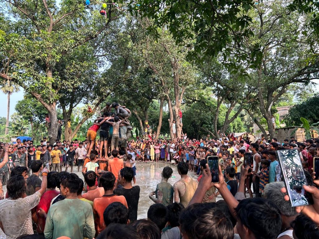 मटका फोड़ प्रतियोगिता में युवाओं ने दिखाया दमखम