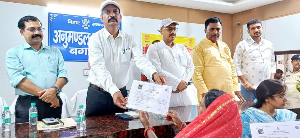 बेतिया। बगहा अनुमंडल क्षेत्र के 80 भूमिहीन व्यक्तियों को आज अभियान बसेरा-02 अंतर्गत 5-5 डिसमिल वासभूमि पर्चा का वितरण किया गया। पर्चा वितरण का कार्यक्रम अनुमंडल सभागार, बगहा में सम्पन्न हुआ। पर्चा वितरण कार्यक्रम में माननीय सांसद, वाल्मीकिनगर, श्री सुनील कुमार, माननीय विधायक, वाल्मीकिनगर, श्री धीरेन्द्र प्रताप सिंह उर्फ रिंकु सिंह, माननीय विधान पार्षद, श्री भीष्म सहनी सम्मिलित हुए और भूमिहीन व्यक्तियों को पर्चा सौंपा।