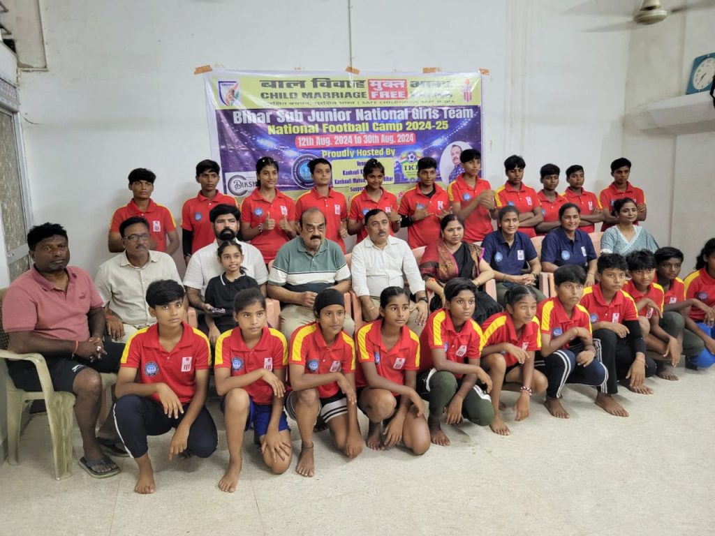 बिहार की अंडर 14 की गर्ल्स की टीम का चयन कर लिया गया है। टीम में 22 लड़कियों को शामिल किया गया है। जिसमें सविता कुमारी , अंशु कुमारी, पिंकी कुमारी , रिंकी कुमारी , अंजली कुमारी, अराधना कुमारी, पन्ना कुमारी, नैना कुमारी, वैष्णवी राज सिंह, साक्षी पटेल , मुस्कान कुमारी , पूजा कुमारी ,ज्वाला कुमारी , चंदा कुमारी , आरसी कुमारी, रोशनी कुमारी, तान्या कुमारी , महिमा कुमारी, नाज परवीन, चांदनी कुमारी, रंजना कुमारी को शामिल किया गया है। उक्त आशय की जानकारी देते हुए स्वर्गीय कन्हाई शुक्ला सामाजिक सेवा संस्थान के सचिव सुधीर कुमार शुक्ला ने बताया कि बिहार फुटबॉल एसोसिएशन के निर्देशानुसार स्वर्गीय कन्हाई शुक्ला सामाजिक सेवा संस्थान के तत्वावधान में बाल विवाह मुक्त भारत अभियान के सहयोग से ट्रायल कैंप लगाया गया था । जहां पर कल 79 लड़कियों ने भाग लिया था। ट्रायल कैंप में परफॉर्मेंस के आधार पर कुल 39 लड़कियों का चयन किया गया। तत्पश्चात कोचिंग कैंप लगाया गया। जिसमें कल 39 लड़कियों ने भाग लिया। कोचिंग कैंप में परफॉर्मेंस के आधार पर 22 लड़कियों का चयन किया गया। टीम का नेतृत्व हेड कोच के रूप में अंतरराष्ट्रीय खिलाड़ी गोल्ड मेडलिस्ट अंशा सिंह करेंगी । जबकि मैनेजर के रूप में सुजाता कुमारी एवं असिस्टेंट मैनेजर के रूप में संजीव कुमार सिंह को शामिल किया गया है। इस अवसर पर खिलाड़ियों का सूची जारी करते हुए वैशाली जिला फुटबाल संघ के सचिव रविंद्र सिंह एवं अध्यक्ष राकेश प्रकाश सिंह ने सभी खिलाड़ियों को बधाई दी। मालूम हो की 2 सितंबर से पश्चिम बंगाल के मालदा में आयोजित होने वाले नेशनल फुटबॉल चैंपियनशिप में खिलाड़ी बिहार का प्रतिनिधित्व करेंगे। इस अवसर पर कृति फाउंडेशन की सचिव सारिका कुमारी, निशी सिंह, राहुल कुमार, राष्ट्रीय खिलाड़ी रजनी अलंकार, बिहार झारखंड के कोच राजेश कुमार सिंह, कन्हैया कुमार झा समेत कई लोगों उपस्थित थे।