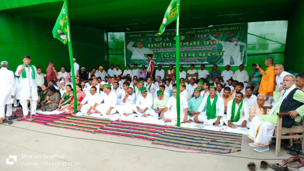 65% आरक्षण लागू करने की मांग को लेकर राजद का एक दिवसीय धरना संपन्न ।