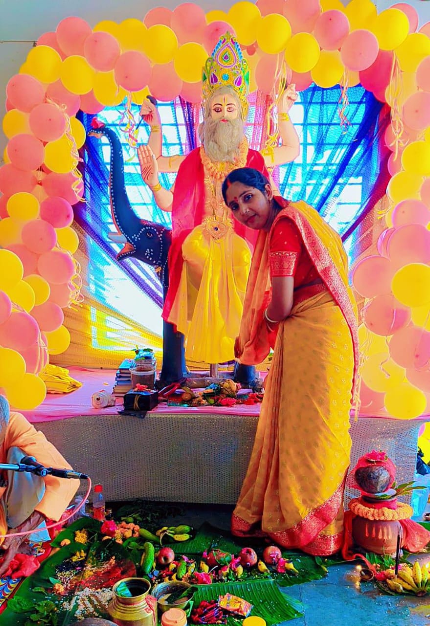 महुआ में देव शिल्पी बाबा विश्वकर्मा की धूमधाम से हुई पूजा