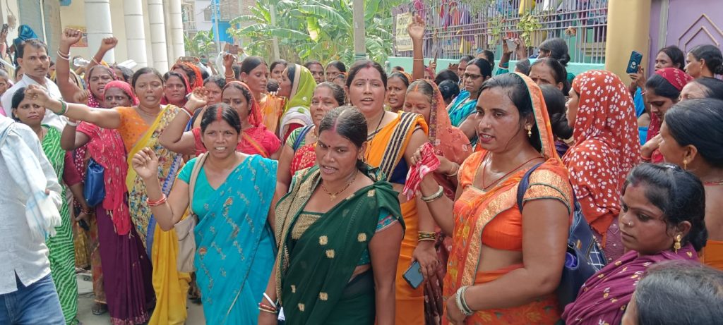 10 सूत्री मांगों के समर्थन में जीविका दीदीओं का महुआ में जोरदार प्रदर्शन