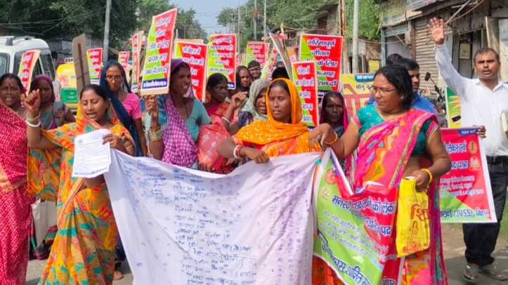 मुजफ्फरपुर ! महात्मा गांधी की 155वी जन्म के दिन जहां देश भर में गांधी जी के विचारो और काम को याद किया जा रहा है, वही दूसरी तरफ बिहार के मज़दूर, किसान, बुजुर्ग, विधवा व विकलांग गांधी जयंती के दिन एक साथ इकट्ठा होकर ‘जन विकास शक्ति संगठन’ ( JVSS), बिहार के बैनर तले अपने अधिकारों की आवाज और काम की मांग को लेकर खुदी राम बोस स्मारक स्थल, मुजफ्फरपुर से पदयात्रा निकाली। पदयात्रा खुदी राम बोस और प्रफुल्ल चंद्र चाकी स्मारक पर फूल चढ़ा कर की गई। पदयात्रा की शुरुआत अब्दुल गफ्फार, CPIM, जिला सचिव, मुजफ्फरपुर, बिहार ने सभी को संबोधित करते हुए की जहा उन्होंने मजदूरों के संघर्षों और उसके अहायमित की बात की।