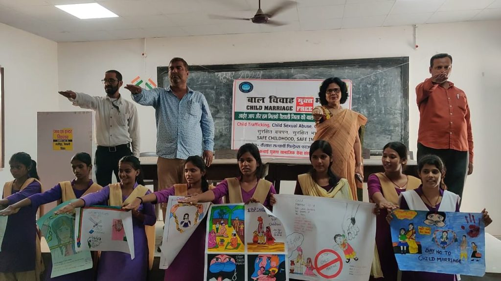 बाल विवाह मुक्त भारत अभियान के तहत जीए इंटर विद्यालय में बच्चों के बीच निबंध, स्लोगन एवं चित्रकला प्रतियोगिता का आयोजन शनिवार को किया गया। कार्यक्रम का उद्घाटन विद्यालय के प्राचार्य राजीव कुमार झा ने किया। निबंध प्रतियोगिता में दीपक कुमार प्रथम स्थान , इशिका वर्मा एवं आदर्श कुमार द्वितीय स्थान तथा आदित्य राज एवं मरियम फातिमा तृतीय स्थान पर रहे। स्लोगन प्रतियोगिता में विशाल कुमार प्रथम स्थान , अंकित कुमार द्वितीय स्थान तथा मरियम फातिमा तृतीय स्थान पर रहे। चित्रकला प्रतियोगिता में सबीहा आफरीन प्रथम स्थान , पुतुल कुमारी एवं आदर्श कुमार द्वितीय स्थान तथा आंचल गुप्ता एवं बबली कुमारी तृतीय स्थान पर रही। इस अवसर पर स्वर्गीय कन्हाई शुक्ला सामाजिक सेवा संस्थान के सचिव सुधीर कुमार शुक्ला ने कहा कि प्रतियोगिता आयोजित करने का उद्देश्य वैशाली जिले से बाल विवाह की कुप्रथा को खत्म करना है। बाल विवाह एक सामाजिक बुराई है। जिसे हम सभी को मिलकर खत्म करना है। इस अवसर पर बच्चों को बाल विवाह न करने हेतु शपथ दिलाई गई। कार्यक्रम के सफल आयोजन में विद्यालय की शिक्षिका रेखा कुमारी , अंजना सिंह , श्रीमती रुखसार , मुक्तिनाथ सिंह , रणधीर कुमार, बिंदा कुमार, विजय शंकर ने अपनी महत्वपूर्ण भूमिका निभाई तथा बाल विवाह के संबंध में छात्रों को विस्तार पूर्वक जानकारी दी । कार्यक्रम के आयोजन में सामुदायिक कार्यकर्ता गुड्डू कुमार एवं राजू कुमार कार्यकर्ता योगदान दिया।