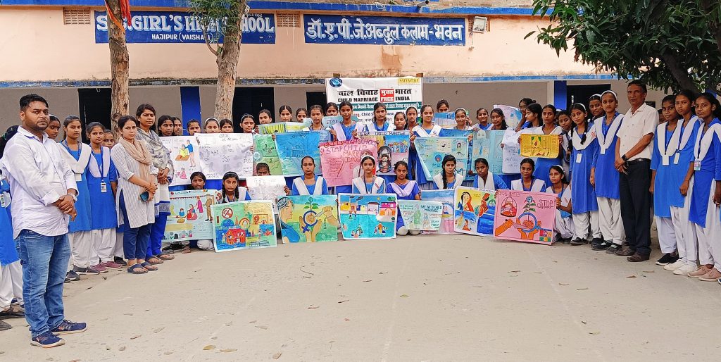बच्चों के बीच चित्रकला प्रतियोगिता, निबंध प्रतियोगिता एवं स्लोगन प्रतियोगिता का आयोजन बाल विवाह मुक्त भारत अभियान के तहत किया गया