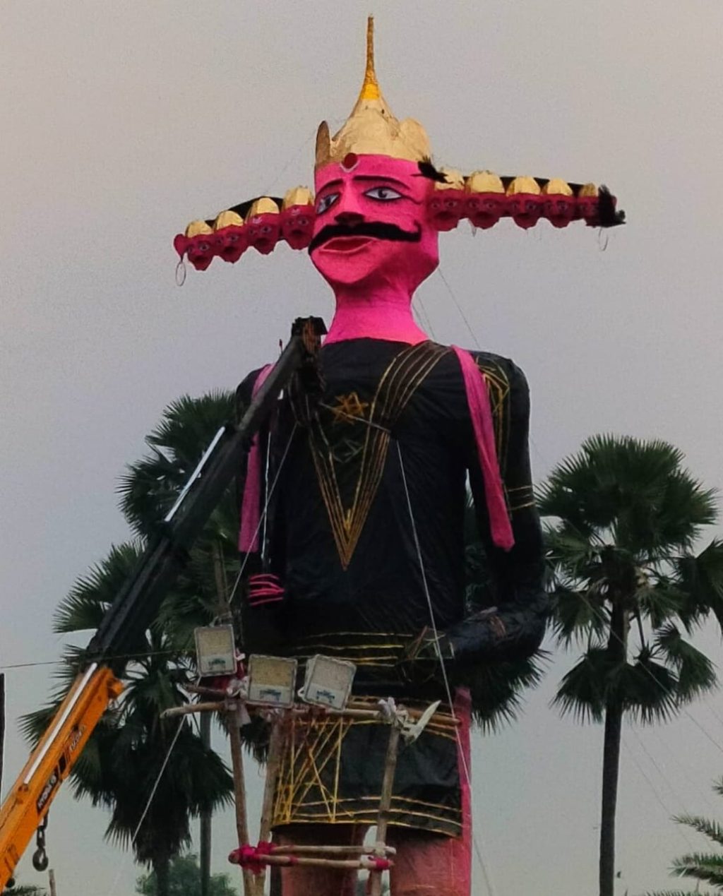 सिंघाड़ा में धू-धू कर जला रावण का पुतला ।