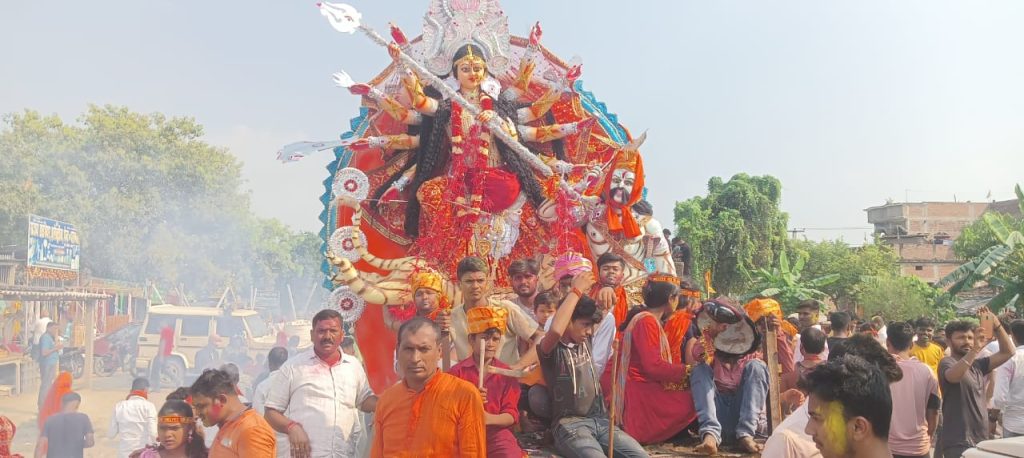 नवयुवक दुर्गा पूजा कमिटी चिकनौटा में मां दुर्गा के प्रतिमा विसर्जन शांतिपूर्ण सम्पन्न
