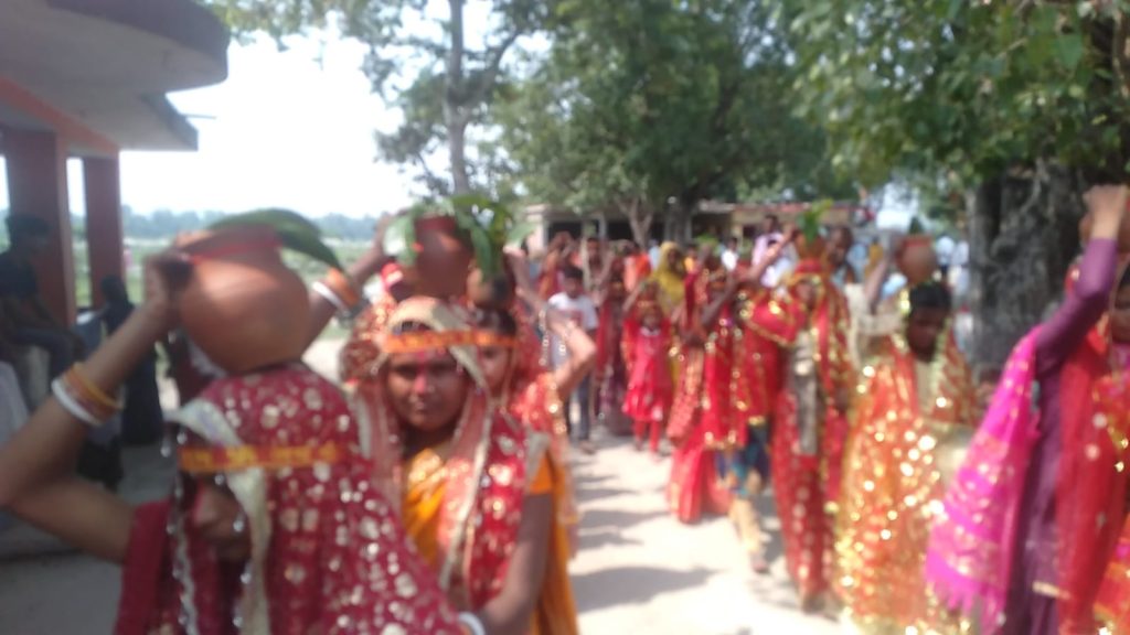महुआ (वैशाली) प्रखंड क्षेत्र के जहांगीरपुर सलखन्नी पंचायत अंतर्गत चांदपुरा में 24 घंटे के अष्टयाम यज्ञ के लिए 551 कन्याओं द्वारा भव्य कलश यात्रा निकाली गई ।यह यज्ञ स्थल से आरंभ होकर पंचायत भवन स्थित राम जानकी मंदिर परिसर में पहुंची, जहां पर पहलेजा से लाए गए गंगाजल सभी कलश में भर आचार्य द्वारा संकल्प कराते हुए शोभायात्रा निकाली गई। जिसमें हजारों की संख्या में नर, नारी ,वृद्ध ,बच्चे ,युवा गाजे बाजे के साथ पंचायत भवन, गैसपूर, बरहर चौक , समसपुरा ,सुपौल होते हुए चांदपुरा यज्ञ स्थल पर पहुंची, जहां पर पूर्ण विधि विधान के साथ यज्ञशाला में कलश को स्थापित किया गया ।यज्ञ के मुख्य यजमान डॉक्टर मुकेश कुमार ने बताया कि समाज में सुख शांति, समृद्धि ,विकास के लिए सामाजिक समरसता बनी रहे, इसके लिए अष्टयाम यज्ञ का आयोजन किया गया है। जिसमें ग्रामीणों का पूर्णरूपेन सहयोग प्राप्त है। पूरे ग्रामवासी यज्ञ में अपना योगदान दे रहे हैं। इस यज्ञ में यजमान मुकेश सिंह ,रेणु देवी ,अमरजीत सिंह,रमिला देवी ,कंचन सिंह ,प्रीति कुमारी,सुमन कुमार , डॉली कुमारी थे ।इस अवसर पर शिव नारायण सिंह,देव नंदन सिंह, लखिंद्र सिंह ,नवल किशोर सिंह ,विनोद सिंह, अमोद सिंह,वीरेंद्र सिंह, उपेंद्र सिंह,सचिदानंद सिंह, श्री किशन सिंह,तारकेश्वर सिंह,अनिल सिंह,अरविंद सिंह,सनोज सिंह,मनोज सिंह,बंगाली कुमार के अलावे पंचायत के मुखिया प्रतिनिधि पारस मणि,पंचायत समिति सदस्य प्रतिनिधि पप्पू चौधरी ,भावी पैक्स उम्मीदवार राजीव कुमार सिंह, जद यू नेता उमेश कुमार सिंह,राम सागर सिंह,संजय राय सहित अन्य लोग उपस्थित थे।