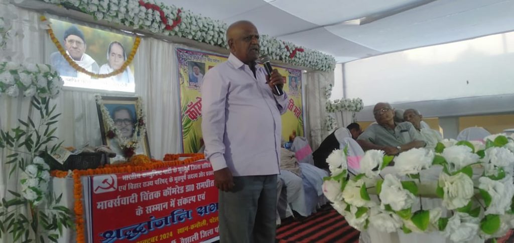 महुआ (वैशाली) क्षेत्र के कन्हौली निवास भारतीय कम्युनिस्ट पार्टी के भूतपूर्व जिला सचिव एवं बिहार राज्य परिषद के पूर्व सदस्य मार्क्सवादी चिंतक कामरेड रामप्रीत पटेल के स्मृति में संकल्प एवं श्रद्धांजलि सभा का आयोजन किया गया ।