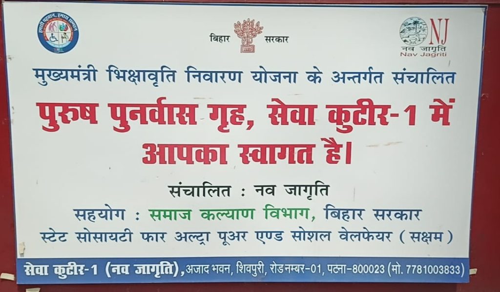 पटना नगर निगम पाटलिपुत्रा अंचल अंतर्गत वार्ड नो0 7 गांधी मूर्ति शिवपुरी रोड नो0 एक आजाद भवन का पास संचालित सक्षम समाज कल्याण विभाग बिहार सरकार द्वारा मुख्यमंत्री भिक्षावृत्ति निवारण योजना का कार्य चलाया जाता है। जिसमें गरीब बृद्धा लाचार असहाय लोगों को रखकर भोजन पोषक एवं जरूरतमंद लोगों को जरूरते के चीजों को पूरा किया जाता है।समय समय पर इसका औचक निरीक्षण भी आला अधिकारीयो द्वारा किया जाता है। फिर भी नगर निगम अनजान।
