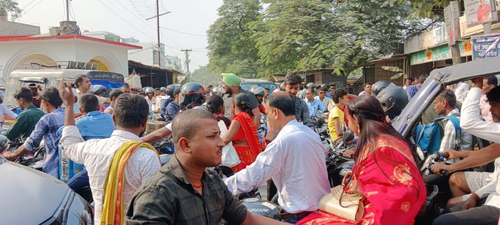 प्रसाद पहुंचाने वालों की भीड़ से जाम हुआ महुआ सहित विभिन्न चौक चौराहा