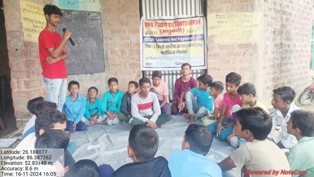 मधुबनी जिला के मधेपुर प्रखंड अंतर्गत लाइन टोल महीशाम मे बिहार बाल अधिकार संरक्षण आयोग पटना के द्वारा 14 से 20 नवंबर तक बाल संरक्षण सप्ताह मनाने का निर्देश दिया गया है उक्त आलोक में दिनांक 16 नवम्बर 2024 को गैर सरकारी संगठन आजाद सरवाइवर कलेक्टिव नेटवर्क मधुबनी के सदस्यों और बाल श्रम से विमुक्त बच्चो के बीच वाद विवाद का आयोजन किया गया ।जिसका टॉपिक बाल दिवस था।