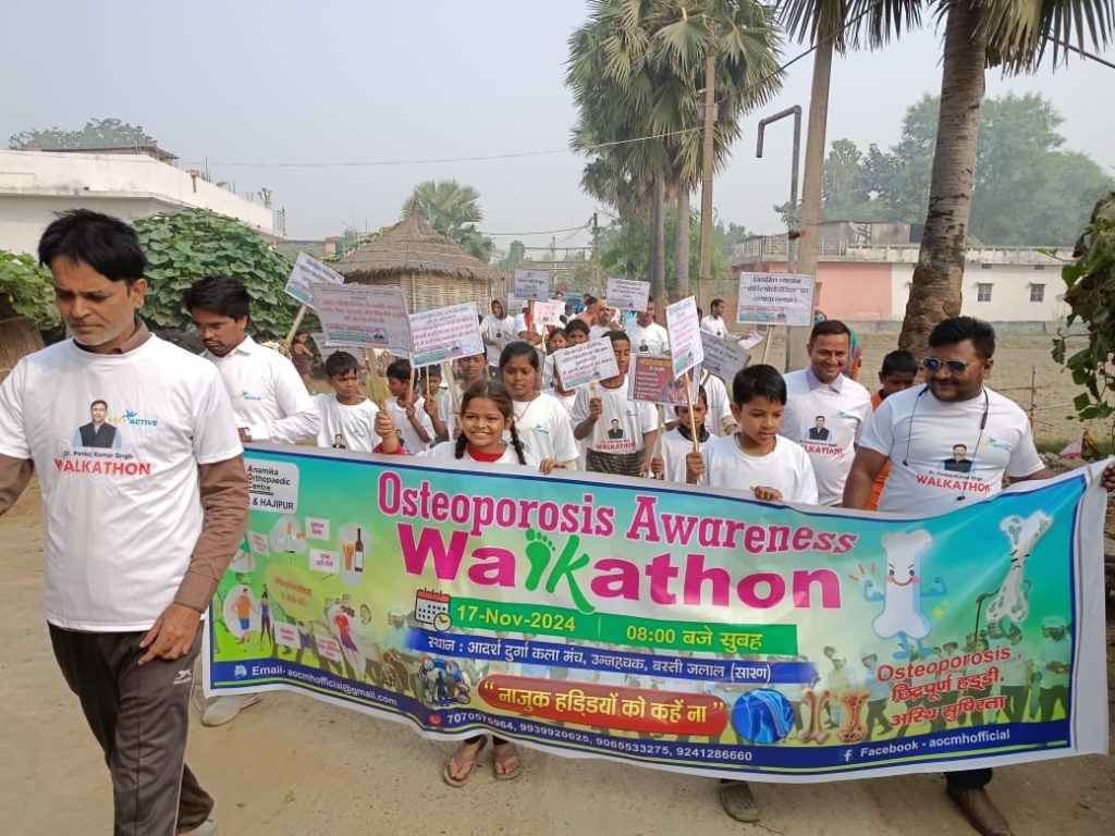 ऑस्टियोपोरोसिस जागरूकता वॉकथॉन के दौरान ऑस्टियोपोरोसिस नामक हड्डी रोग होने के कारण व बचाव के बारे में लोगों को बताया गया इस रोग के कारण हड्डी खोखली व कमजोर हो जाती और यह रोग लोगों के अनियमित दिनचर्या व अनुचित खान- पान के कारण लोग इससे ग्रसीत होते जा रहे हैं।