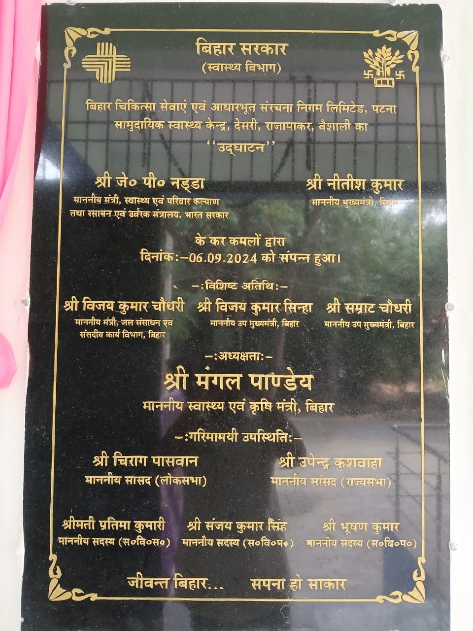 मुख्यमंत्री को दिए गए पत्र में कहा गया है कि केन्द्रीय स्वास्थ्य एवं परिवार कल्याण मंत्री जेपी नड्डा, मुख्यमंत्री नीतीश कुमार के द्वारा 6 सितंबर 2024 को देसरी के नवनिर्मित सामुदायिक स्वास्थ्य केंद्र भवन का उद्घाटन तो कर दिया गया लेकिन सामुदायिक स्वास्थ्य केंद्र के मानक के अनुरूप डॉक्टर, पैरामेडिकल स्टाफ, डिजिटल एक्स-रे, अल्ट्रासाउंड सहित सामुदायिक स्वास्थ्य केंद्र के बुनियादी साधनों को पूरा नहीं किया जा सका है।