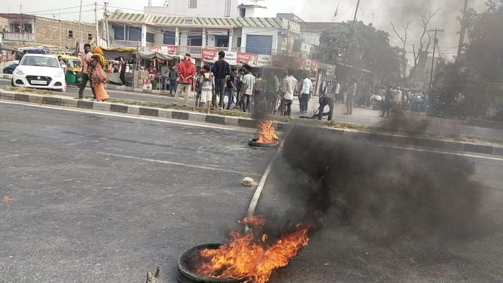 बेलगाम हाईवा की ठोकर से एक भाई की घटना स्थल पर ही हुई मौत एक भाई गम्भीर रूप से जख्मी । सरैया बेलशर मुख्य मार्ग के भटौलीया गांव के निकट वृहस्पतिवार की सुबह-सुबह एक तेज रफ्तार हाईवा की ठोकर से एक भाई की मौत घटना स्थल पर ही हो गई वहीं दूसरा भाई गम्भीर रूप से जख्मी हो गया , मृतक की पहचान थाना क्षेत्र के मोहनपुर गांव निवासी नंदू राय का 22 वर्षीय पुत्र सोनु कुमार एवं एवं जख्मी 25 वर्षीय रंजीत कुमार के रूप में हुई है । घटना के सम्बन्ध में बताया गया है कि मृतक सोनु कुमार अपने बड़े भाई को डियुटी पर पहुंचाने बाइक से जा रहा था की इसी दौरान बेलशर की ओर से आ रही एक तेज रफ्तार हाईवा संख्या BR 31 GA 2801 ने जोरदार ठोकर मार दिया जिससे सोनु कुमार की मौत घटना स्थल पर ही हो गई , वहीं उसका बड़ा भाई रंजीत कुमार बुरी तरह से जख्मी हो गया , स्थानीय लोगों ने जख्मी हालत में रंजीत कुमार को प्राथमिक स्वास्थ्य केंद्र गोरौल ले गए जहां प्राथमिक उपचार के बाद नाजुक स्थिति को देखते हुए डॉक्टर ने उसे अच्छे इलाज के लिए हाजीपुर सदर अस्पताल रेफर कर दिया, साथ ही इस घटना की सूचना स्थानीय थाना एवं उसके परिजनों को दी गई, सुचना मिलते ही घर में कोहराम मच गया वृद्ध पिता का रो रो कर बुरा हाल है, रो रो कर पिता कह रहा था अब हम केकरा बरियात लेकर जबई ड़े बेटा । घटना की सूचना मिलते ही थाना अध्यक्ष रौशन ,अपर थाना अध्यक्ष प्रशांत कुमार , अभय शंकर सिंह , शैलेन्द्र कुमार, शिवम कुमारी पुलिस बल के साथ घटनास्थल पर पहुंचे, वहीं इस घटना के विरोध में उग्र लोगों ने सड़क जाम कर आवा गमन पुरी तरह से बाधित कर दिया साथ ही साथ हाजीपुर मुजफ्फरपुर मुख्य मार्ग एन एच 22 पर भी टायर जलाकर आधे घंटे सड़क अवरुद्ध कर दिया, स्थिति बिगड़ता देख अंचल अधिकारी अंशु कुमार , प्रमुख मुन्ना कुमार बेलशर एवं भगवानपुर थाना भी घटना स्थल पर पहुंच गए काफी मशक्कत के बाद लोगों को समझा बुझाकर मुआवजे की राशि सहित हर सम्भव सहायता करने का आश्वासन दिया उसके के बाद शव को कब्जे में लेकर पोस्टमार्टम के लिए हाजीपुर भेज दिया , बताया गया है कि सोनु कुमार की शादी इसी माह में कुढ़नी थाना क्षेत्र के गौंशी गांव में होने वाली थी 25 नवम्बर को मृतक सोनु की बारात जाने वाली थी , इस घटना से मृतक के गांव में मातम छाया हुआ है, ।