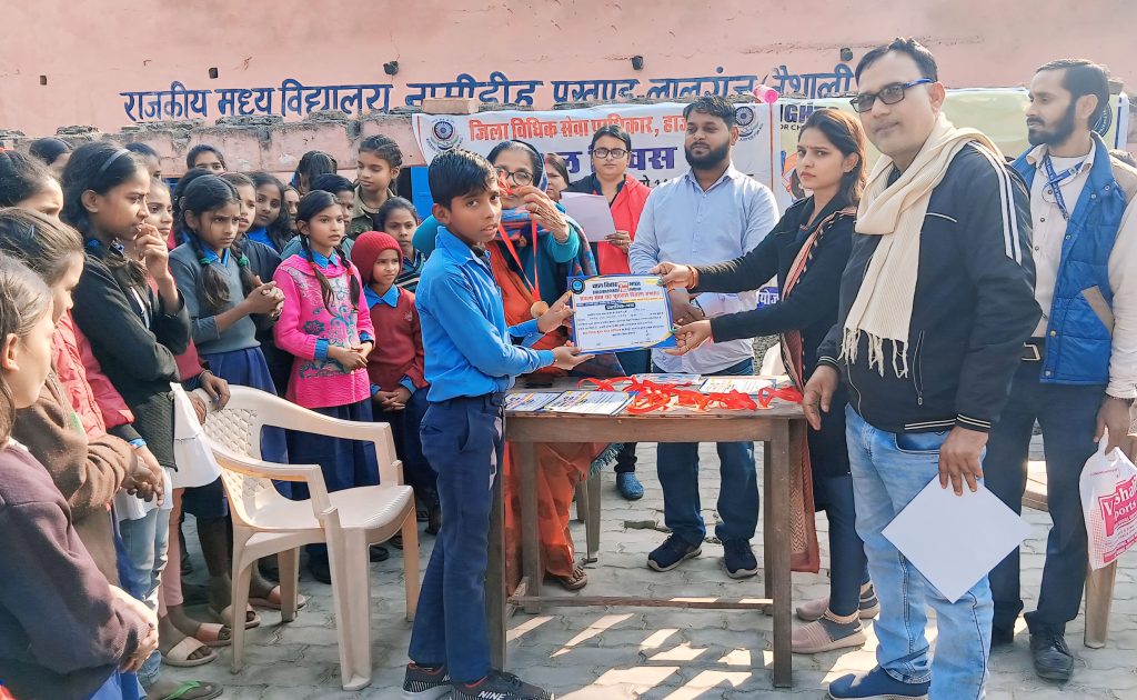 लालगंज प्रखंड क्षेत्र के राजकीय मध्य विद्यालय नामीडीह में संकल्प सभा सह पुरस्कार वितरण कार्यक्रम का आयोजन किया गया। कार्यक्रम स्वर्गीय कन्हाई शुक्ला सामाजिक सेवा संस्थान और जिला विधिक सेवा प्राधिकार वैशाली के संयुक्त तत्वावधान में आयोजित किया गया। “बाल विवाह मुक्त भारत” अभियान के तहत आयोजित कार्यक्रम में बच्चों के बीच चित्रकला प्रतियोगिता,निबंध लेखन प्रतियोगिता और स्लोगन प्रतियोगिता के सफल प्रतिभागियों के बीच प्रशस्ति पत्र और मेडल देकर सम्मानित किया गया। कार्यक्रम की अध्यक्षता विद्यालय के प्रभारी प्रधानाध्यापक बबुनी कुंवर ने की । चित्रकला प्रतियोगिता में प्रथम स्थान के लिए शुभम राज को चुना गया, वहीं द्वितीय स्थान के श्रेया राज और तृतीय स्थान पर रितिका कुमारी रही। निबंध लेखन प्रतियोगिता में क्रमशः प्रथम द्वितीय और तृतीय स्थान के लिए रिचा कुमारी, सलोनी कुमारी और सिद्धि कुमारी चुनी गई।स्लोगन प्रतियोगिता में शुभम राज प्रथम,सोनम कुमारी द्वितीय और तीसरा स्थान जुली कुमारी ने प्राप्त किया।इस दौरान जस्ट राइट्स फॉर चिल्ड्रन के डायरेक्टर सह स्वर्गीय कन्हाई शुक्ला सामाजिक सेवा संस्थान के सचिव सुधीर शुक्ला ने बताया कि हम सभी का उद्देश्य है कि वैशाली जिले को बाल विवाह मुक्त जिला बनाया जाए।इस दिशा में पुलिस प्रशासन,जिला प्रशासन और सामाजिक संगठनों के लोग पूरी तत्परता से कार्य कर रहे हैं। वर्ष 2030 तक भारत को पूर्ण रूप से बाल विवाह मुक्त राष्ट्र बनाने का लक्ष्य रखा गया है।कार्यक्रम में अधिकार मित्र संतोष कुमार,अमरेश कुमार और प्रोजेक्ट कोर्डिनेटर शालिनी भारती ने बच्चों को बाल विवाह के संबंध में विस्तृत जानकारी दी।साथ ही बच्चों से बाल विवाह न करने का संकल्प लिया भी लिया गया ।कार्यक्रम में शिक्षक मनोज कुमार ,वंदना प्रिया,पुतुल कुमारी, मीरा कुमारी,विश्वजीत,अमन,शुभम, अर्चना, रौशनी, चन्दन, रचना आदि मौजूद थे।