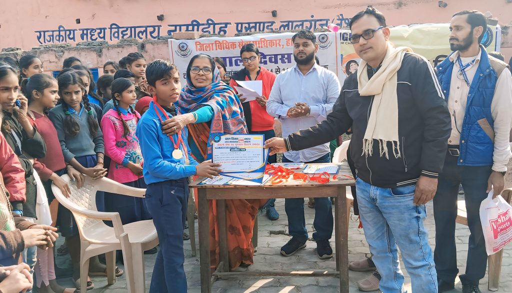 लालगंज प्रखंड क्षेत्र के राजकीय मध्य विद्यालय नामीडीह में संकल्प सभा सह पुरस्कार वितरण कार्यक्रम का आयोजन किया गया। कार्यक्रम स्वर्गीय कन्हाई शुक्ला सामाजिक सेवा संस्थान और जिला विधिक सेवा प्राधिकार वैशाली के संयुक्त तत्वावधान में आयोजित किया गया। “बाल विवाह मुक्त भारत” अभियान के तहत आयोजित कार्यक्रम में बच्चों के बीच चित्रकला प्रतियोगिता,निबंध लेखन प्रतियोगिता और स्लोगन प्रतियोगिता के सफल प्रतिभागियों के बीच प्रशस्ति पत्र और मेडल देकर सम्मानित किया गया। कार्यक्रम की अध्यक्षता विद्यालय के प्रभारी प्रधानाध्यापक बबुनी कुंवर ने की । चित्रकला प्रतियोगिता में प्रथम स्थान के लिए शुभम राज को चुना गया, वहीं द्वितीय स्थान के श्रेया राज और तृतीय स्थान पर रितिका कुमारी रही। निबंध लेखन प्रतियोगिता में क्रमशः प्रथम द्वितीय और तृतीय स्थान के लिए रिचा कुमारी, सलोनी कुमारी और सिद्धि कुमारी चुनी गई।स्लोगन प्रतियोगिता में शुभम राज प्रथम,सोनम कुमारी द्वितीय और तीसरा स्थान जुली कुमारी ने प्राप्त किया।इस दौरान जस्ट राइट्स फॉर चिल्ड्रन के डायरेक्टर सह स्वर्गीय कन्हाई शुक्ला सामाजिक सेवा संस्थान के सचिव सुधीर शुक्ला ने बताया कि हम सभी का उद्देश्य है कि वैशाली जिले को बाल विवाह मुक्त जिला बनाया जाए।इस दिशा में पुलिस प्रशासन,जिला प्रशासन और सामाजिक संगठनों के लोग पूरी तत्परता से कार्य कर रहे हैं। वर्ष 2030 तक भारत को पूर्ण रूप से बाल विवाह मुक्त राष्ट्र बनाने का लक्ष्य रखा गया है।कार्यक्रम में अधिकार मित्र संतोष कुमार,अमरेश कुमार और प्रोजेक्ट कोर्डिनेटर शालिनी भारती ने बच्चों को बाल विवाह के संबंध में विस्तृत जानकारी दी।साथ ही बच्चों से बाल विवाह न करने का संकल्प लिया भी लिया गया ।कार्यक्रम में शिक्षक मनोज कुमार ,वंदना प्रिया,पुतुल कुमारी, मीरा कुमारी,विश्वजीत,अमन,शुभम, अर्चना, रौशनी, चन्दन, रचना आदि मौजूद थे।