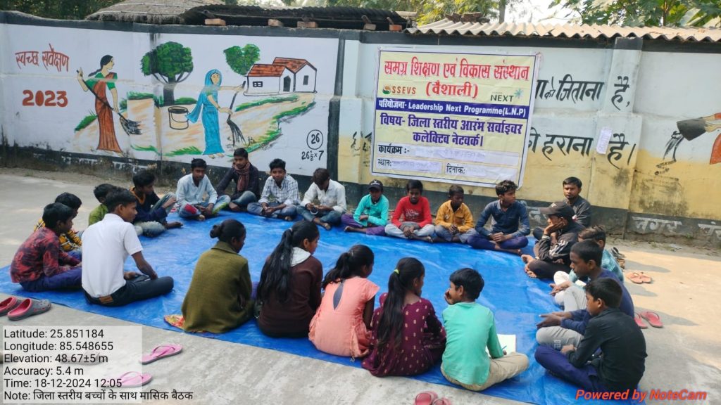 वैशाली जिला के पातेपुर प्रखंड के कावहि पंचायत के आंगनबाड़ी केंद्र में जिला स्तरीय आरंभ सरवाइवर कलेक्टिव नेटवर्क के बच्चों के साथ मासिक बैठक आयोजन किया गया जिला स्तरीय बच्चों के साथ मासिक बैठक में निम्नलिखित बिंदुओं पर चर्चा किया गया