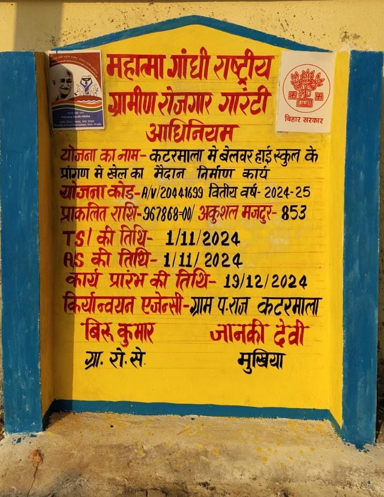 बेलवर हाईस्कूल के प्रांगण में मनरेगा द्वारा किए जा रहे खेल मैदान के निर्माण में काफी लूट खसोट किया जा रहा है,