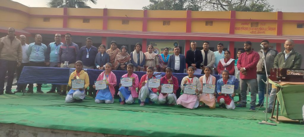 स्वर्गीय कन्हाई शुक्ला सामाजिक सेवा संस्थान के द्वारा जस्ट राइट्स फॉर चिल्ड्रन कार्यक्रम के तत्वावधान में चलाए जा रहे बाल विवाह मुक्त भारत अभियान के तहत हाजीपुर के राजकीयकृत माना रामेश्वर उच्च माध्यमिक विद्यालय चांदी में संकल्प सभा सह पुरस्कार वितरण कार्यक्रम का आयोजन किया गया। कार्यक्रम में बाल विवाह संदर्भित विषय पर आयोजित चित्रकला, स्लोगन और निबंध लेखन प्रतियोगिता के सफल प्रतिभागियों को प्रशस्ति पत्र और मेडल देकर सम्मानित किया गया। कार्यक्रम की अध्यक्षता विद्यालय के प्रभारी प्रधानाध्यापक डॉ तारानन्द सिंह ने की।चित्रकला प्रतियोगिता में प्रथम स्थान के लिए नंदनी कुमारी को चुना गया, वहीं द्वितीय स्थान पर मनीषा कुमारी रहीं, तृतीय स्थान के लिए किरण कुमारी को चुना गया । निबंध लेखन प्रतियोगिता में क्रमशः प्रथम द्वितीय और तृतीय स्थान के लिए मंशिखा कुमारी,नंदनी कुमारी और तानवी कुमारी चुनी गई।स्लोगन प्रतियोगिता में मंशिखा कुमारी प्रथम,काजल कुमारी द्वितीय और तृतीय स्थान राजनंदनी ने प्राप्त किया।इस दौरान जस्ट राइट्स फॉर चिल्ड्रन के निदेशक सह स्वर्गीय कन्हाई शुक्ला सामाजिक सेवा संस्थान के सचिव सुधीर शुक्ला ने बताया कि भारत में 18 वर्ष से कम उम्र की लड़की और 21 वर्ष से कम उम्र के लड़के की गई शादी को बाल विवाह माना गया है। बाल विवाह एक सामाजिक बुराई और कानूनी जुर्म है।देश से बाल विवाह जैसे कुरीतियों को खत्म करने के लिए हम सभी को सामूहिक रूप से प्रयास करना होगा। इस दिशा में पुलिस प्रशासन,जिला प्रशासन और सामाजिक संगठनों के लोग पूरी तत्परता से कार्य कर रहे हैं। प्रगतिशील राष्ट्र की श्रेणी में शुमार भारत को सन 2030 तक बाल विवाह मुक्त बनाने का लक्ष्य रखा गया है।लोगों से बाल विवाह,बाल मजदूरी,बाल यौन शोषण,और बाल तस्करी जैसे मामलों में सहायता के लिए चाइल्ड हेल्पलाइन नंबर 1098 पर संपर्क करने की अपील की गई। इस दौरान अधिकार मित्र सह प्रेरक दूत संतोष कुमार,अमरेश कुमार राजू और कन्हाई कुमार ने बाल विवाह से होने वाले कुप्रभाव को बताया और बच्चों को बाल विवाह नहीं करने की शपथ दिलाई । कार्यक्रम में शिक्षक गिरीश कुमार राजीव कुमार सिंह, जितेंद्र कुमार सिंह,नलिन कुमार शुक्ला,अरुण कुमार महतो,शिल्पी कुमारी, कौशल्या कुमारी,प्रतिभा कुमारी, अंजुमन अख्तर, श्रुति पांडे आदि मौजूद थे।