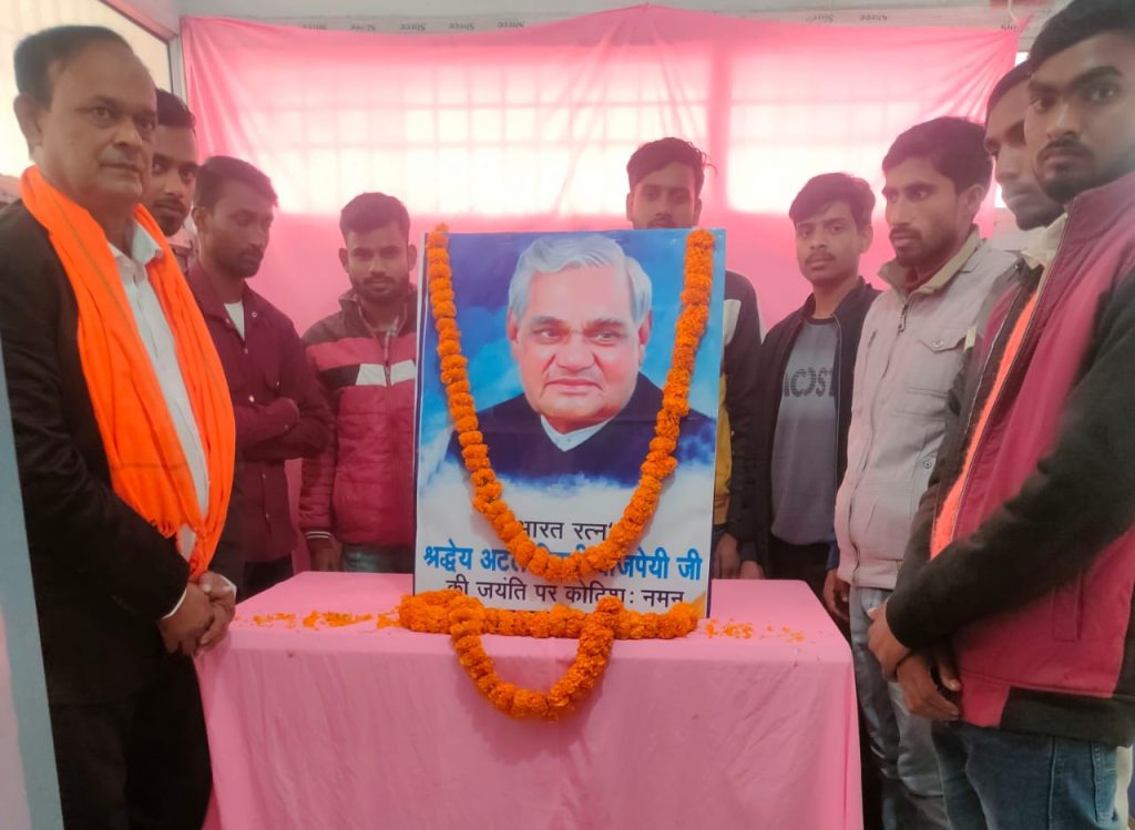 इस मौके पर उपस्थित लोगों ने डॉ अजीत कुमार के नेतृत्व में अटल बिहारी वाजपेई के चित्र पर पुष्प चढ़कर श्रद्धा सुमन अर्पित किया।