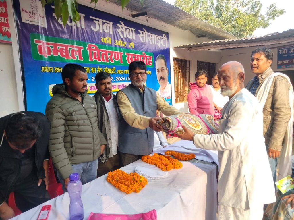 सर्दी का मौसम देखते हुए गरीब असहाय के बीच बंटा कम्बल