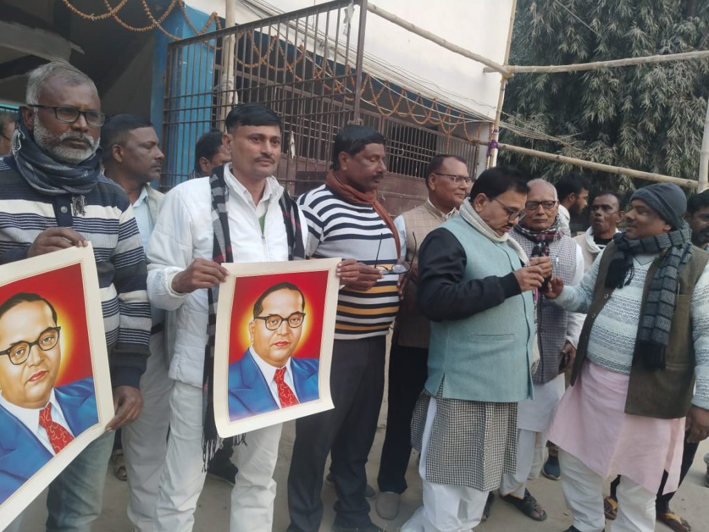 बाबा साहेब डा भीम राव अम्बेडकर प्रतिमा स्थल न्याय मंडप नगर भवन मधुबनी के समक्ष संविधान आरक्षण बचाओसंघर्ष मोर्चा मधुबनी के बैनर तले देश के गृह मंत्री अमित शाह के द्वारा संसद भवन में असंसदीय भाषा से भारत रत्न संविधान निर्माता बाबा साहेब डा अम्बेडकर का अपमान किए जाने के विरोध में सभी अम्बेडकर वादी विचार धारा को मानने वाले बहुजन समाजवादी के जागृति साथियों द्वाराअमित शाह का अर्थी जुलुस निकाल कर पुतला फूंक कर दाह संस्कार गाजा बाजा के साथ बाबा साहेब डॉ भीमराव अम्बेडकर प्रतिमा स्थल न्याय मंडप से निकाल कर मुख्य बाजार होते चौक चौराहा पर फूका गया मनु स्मृति दहन दिवस के मौके पर आयोजित इस विशाल अर्थी जुलुस में भाग लेने वाले बहुजन नायकों में शामिल राजकुमार यादव, राजेंद् यादव, विनय कुमार अजीत पासवान, चन्ने सादा, संजय राम, , आलोक देवराज, कपिल कुमार, माडिया प्रभारी मधुबनी बिहार राजेश पासवान, ,राजेंद्र प्रसाद सह, मांगण राम, राजू राम, मिथिलेश पासवान सुरेश चौधरी, संजय चौधरी, , अशोक पासवान, मुकेश पासवान, आनंद राम, दीपक राम, राजू साफी, राधेश्याम साफी, दिनेश महती, अजय राम, मुनेशश्येर कामती, सहित सैकड़ों लोगों ने भाग लिया संयुक्त अध्यक्षता दर राम नरेश पासवान, और बुद्ध प्रकाश जी ने किया धन्यवाद ज्ञापन बलराम पासवान ने किया वक्ताओं ने अमित शाह से माफी मांगने की मांग की मंत्री पद से इस्तीफा देने की मांग जनसमूह ने की अस्थि कलश राजेंद्र पासवान के कुरेदान में बिशर्जित किया