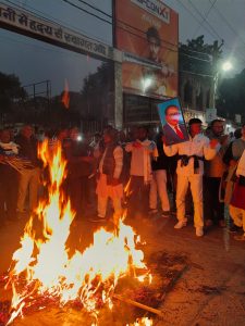 मनुस्मृति की प्रतियां जलाई गई और अमित शाह का अर्थि भी जलाई गई अब लोगों में गुस्सा
