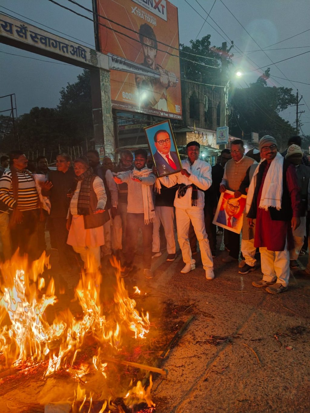 بابا صاحب ڈاکٹر بھیم راؤ امبیڈکر کے مجسمہ کی جگہ نیا منڈپ نگر بھون مدھوبنی کے سامنے آئین بچاؤ سنگھرش مورچہ مدھوبنی کے بینر تلے بھارت رتن کے آئین ساز بابا صاحب ڈاکٹر بھیم راؤ امبیڈکر کی توہین کے خلاف احتجاج میں ملک کے وزیر داخلہ امت شاہ نے پارلیمنٹ ہاؤس میں غیر پارلیمانی زبان کے ساتھ نظریات کی پیروی کرنے والے بہوجن سماج وادی کے تمام جاگرتی ساتھیوں نے امیت شاہ کے جنازے کا جلوس نکالا اور پتلا جلایا اور اس کی آخری رسومات ادا کیں بابا صاحب کے مجسمہ جلوس کے ساتھ نیا منڈپ کے مقام سے نکالا گیا اور مرکزی بازار ہوتے ہوئے چوک چوراہا پر جلسہ کی شکل میں جلایا گیا راج کمار یادو، راجیند یادو، ونے کمار اجیت پاسوان، شامل تھے جنہوں نے اس بڑے جلوس میں حصہ لیا۔ منو اسمرتی کی کاپیاں بھی جلا ئی موقع پر ، سنجے رام، آلوک دیوراج، کپل کمار پاسوان میڈیا انچارج مدھوبنی بہار راجیش پاسوان، راجندر پرساد ساہا، مگن رام، راجو رام، متھلیس پاسوان۔ سریش چودھری، سنجے چودھری، اشوک پاسوان، مکیش پاسوان، آنند رام، دیپک رام، راجو صافی، رادھے شیام صافی، دنیش مہتو، اجے رام، منیش کامٹی، رام نریش پاسوان، اور بدھا پرکاش سمیت سینکڑوں لوگوں نے شرکت کی۔ ان کا شکریہ اور بلرام پاسوان نے امیت شاہ سے معافی کا مطالبہ کیا اور کارکنوں نے وزیر کے عہدے سے استعفیٰ کا مطالبہ کیا راجندر پاسوان کے ذریعہ راکھ کو کوڑے دان میں پھینک دیا گیا