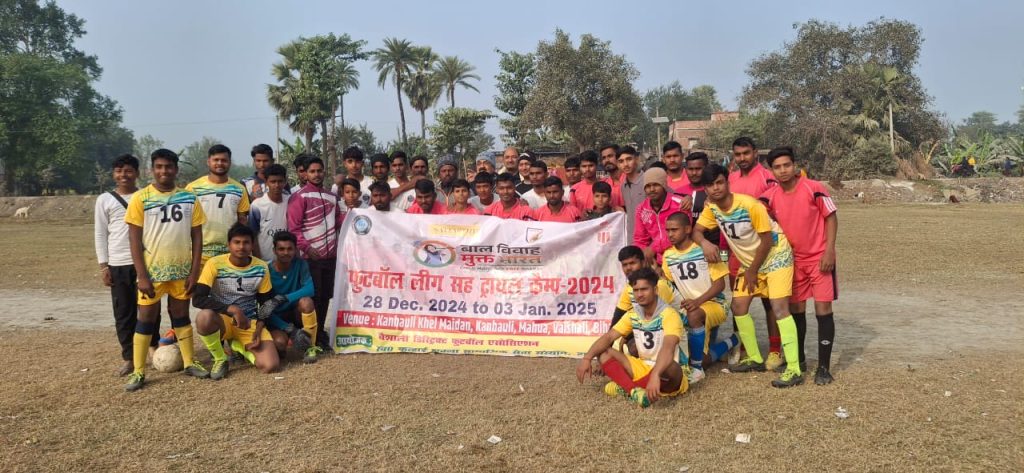 वैशाली जिले के कन्हौली खेल मैदान में फुटबॉल लीग मैच सह ट्रायल कैंप 2024 का आयोजन 28 दिसंबर से 3 जनवरी 2025 तक किया जा रहा है। गुरुवार को खेले गए पहले मैच में महुआ की टीम ने भरोकरा की टीम को 1-0 से पराजित किया। दूसरे मैच में गोप स्पोर्ट्स क्लब सोनपुर की टीम ने टाइगर स्पोर्ट्स क्लब नारी को 3-2 से पराजित किया। तीसरे मैच में कन्हाई शुक्ला स्पोर्ट्स क्लब ने केयर फुटबॉल क्लब को 4-0 से पराजित किया। बाल विवाह मुक्त भारत अभियान के सहयोग से स्वर्गीय कन्हाई शुक्ला सामाजिक सेवा संस्थान द्वारा आयोजित लीग मैच का उद्घाटन जिला फुटबॉल एसोसिएशन के सचिन रविंद्र सिंह , अध्यक्ष राकेश प्रकाश सिंह , संस्था के सचिव सुधीर कुमार शुक्ला ने संयुक्त रूप से किया। श्री शुक्ला ने अवसर पर खिलाड़ियों को संबोधित करते हुए कहा कि हम सभी का उद्देश्य है कि ग्रामीण क्षेत्र में खेल के प्रतिभा को बढ़ाया जाए । कार्यक्रम को बाल विवाह मुक्त भारत अभियान के तहत आयोजित किया गया है। ताकि समाज से हम बाल विवाह जैसे सामाजिक बुराई को खत्म कर सके। इस अवसर पर धीरज कुमार, पवन सिंह, प्रोफेसर वेद प्रकाश पटेल , संजय कुमार, नवल सिंह , सुमन गुप्ता , गोप जी , पोलक सिंह इत्यादि ने खेल के आयोजन में अपनी महत्वपूर्ण भूमिका निभाई। रेफरी के रूप में बिहार झारखंड के रेफरी राजेश कुमार सिंह उपस्थित थे।