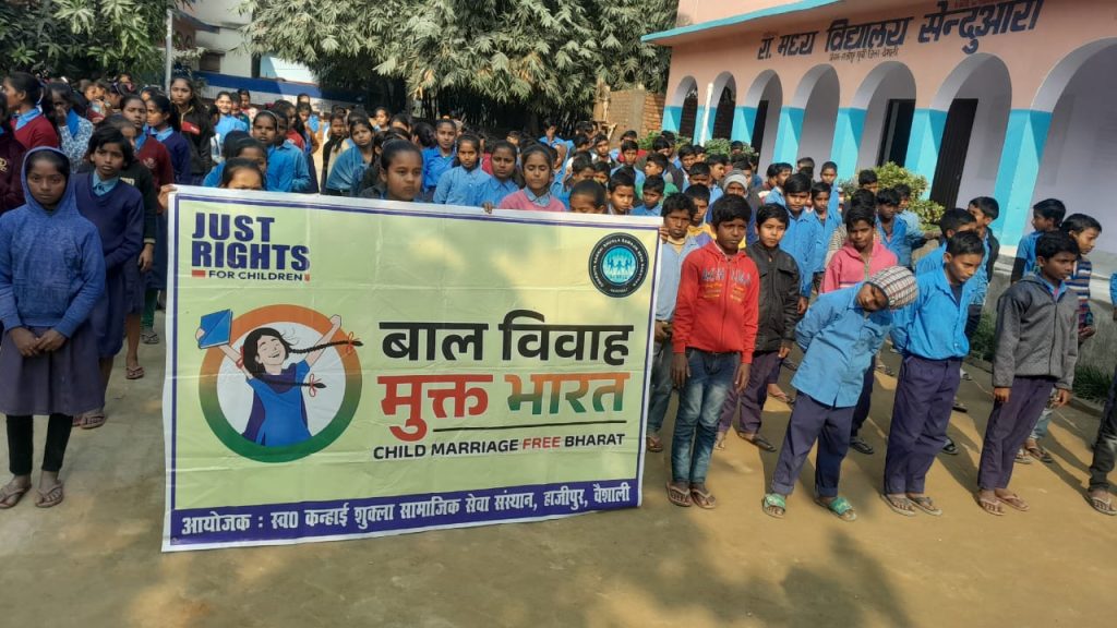 जस्ट राइट्स फॉर चिल्ड्रन के सहयोग से बाल विवाह मुक्त भारत अभियान के तहत स्वर्गीय कन्हाई शुक्ला सामाजिक सेवा संस्थान के तत्वावधान में जिले के विभिन्न स्कूलों में शपथ सह जागरूकता कार्यक्रम का आयोजन सोमवार को किया गया। उक्त आशय की जानकारी देते हुए स्वर्गीय कन्हाई शुक्ला सामाजिक सेवा संस्थान के सचिव सह जस्ट राइट्स फॉर चिल्ड्रन के डायरेक्टर सुधीर कुमार शुक्ला ने बताया कि बाल विवाह मुक्त भारत अभियान के तहत वैशाली जिले के प्राथमिक मध्य एवं हाई स्कूलों में जागरूकता कार्यक्रम का आयोजन किया गया। हम सभी का उद्देश्य है कि भारत को 2030 तक बाल विवाह मुक्त राष्ट्र बनाया जाए ।