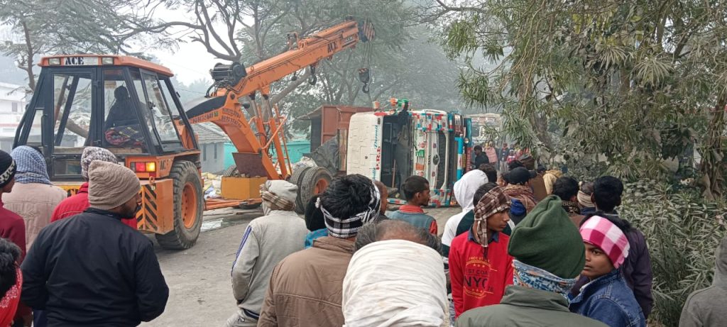 बताया जा रहा है कि 18 चक्के वाला ट्राली ट्रक सीमेंट और अन्य सामान लेकर समस्तीपुर जा रहा था। लोगों द्वारा अनुमान लगाया जा रहा है कि देर रात में चालक को झपकी आ जाने के कारण गाड़ी अनियंत्रित होकर दाहिनी और चली गई। जिसे चालक नियंत्रित करना चाहा। इस बीच गाड़ी पर लोड अधिक होने के कारण ट्रॉली अनियंत्रित होकर दाहिनी ओर पलट गया