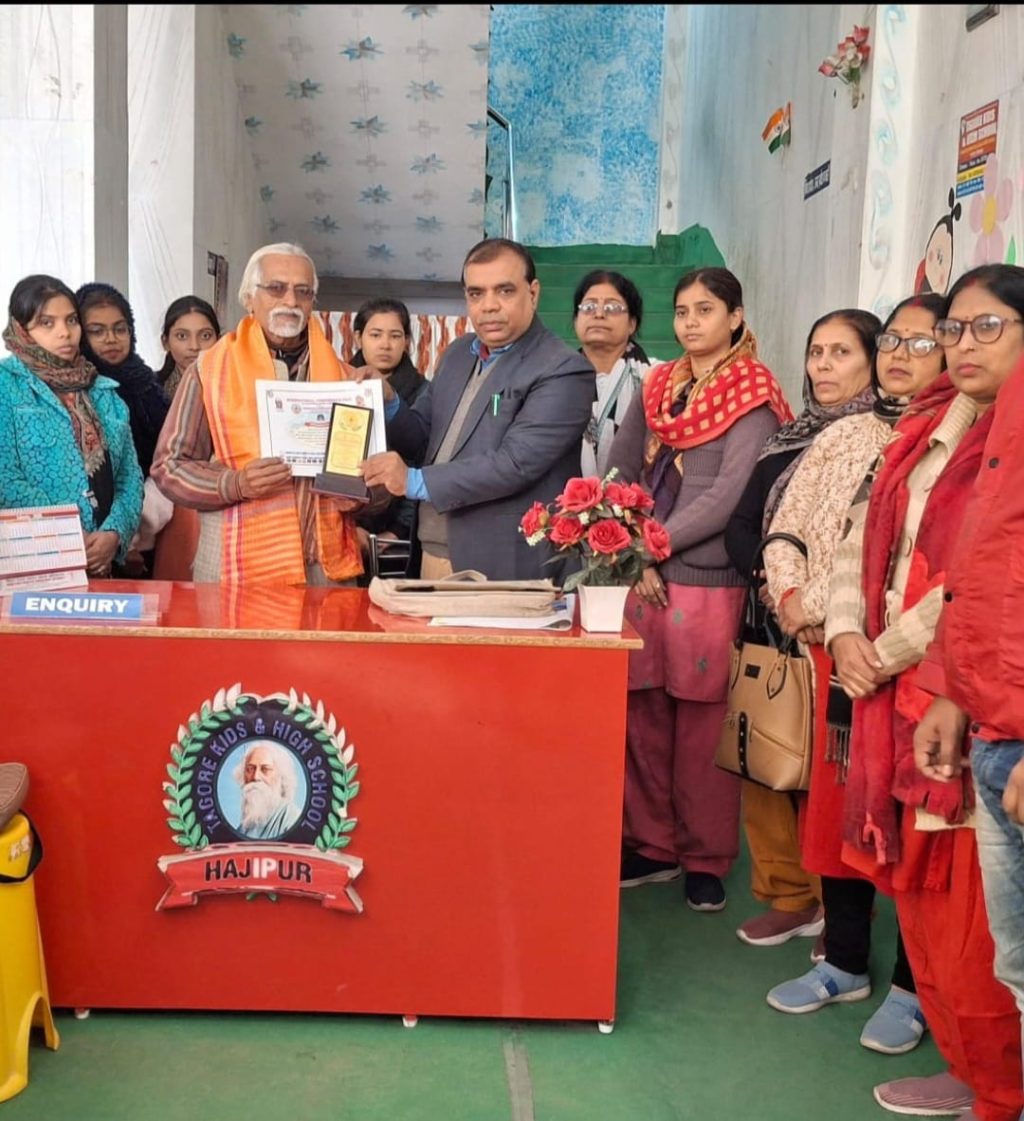 हाजीपुर शहर के मेदिनीमल जगदंबा स्थान स्थित टैगोर किड्स एंड हाई स्कूल में एक आयोजन के दौरान ख्याति प्राप्त विद्वान और वरिष्ठ पत्रकार सुरेंद्र मानपुरी जी को उनकी उत्कृष्ट रचनाओं और पत्रकारिता जीवन में बहुमूल्य योगदान के लिए अंग वस्त्र,मोमेंटो एवं सम्मान पत्र दे कर इन्हें सम्मानित किया गया। यह अंतर्राष्ट्रीय सम्मान इन्हें वैशाली में 4 जनवरी 2025 को आयोजित भारत,नेपाल,मॉरिशस एवं थाइलैंड जैसे चार देशों के अन्तर्राष्ट्रीय मातृभाषा सम्मेलन में दिया जाना था। शारीरिक अस्वास्थता के कारण श्री मानपुरी वहां नहीं पहुंच सके थे। अब यह सम्मान इन्हें आयोजन समिति के मुख्य संयोजक और आम्रपाली साहित्य सम्मेलन के अध्यक्ष अन्तर्राष्ट्रीय मानवाधिकार पत्रिकारिता के संवाहक डॉ शशिभूषण कुमार ने अपने हाथों से समर्पित करते हुये खुशी व्यक्त किया है। साथ ही उन्होंने यह भी कहा कि श्री मानपुरी अपने अपने पत्रकारिता काल में संपूर्ण जीवन अपनी उच्च स्तरीय लेखनी और साहित्य समझ से पत्रकारिता को एक नई ऊँचाई प्रदान करने का काम किया है। इनकी जीतनी भी सराहना की जाए कम ही होगी। इस कार्यक्रम में पिंकी कुमारी,रेणु शर्मा,शबनम खनम,रूसी कुमारी,साक्षी,जुली,लूबना नवाज,सुष्मिता वर्मा,कुंदन कुमार,विधि ठाकुर, नेहा कुमारी,मुस्कान एवं सुप्रिया कुमारी उपस्थित थे।