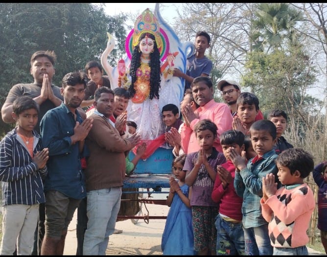 सरस्वती पूजनोत्सव को लेकर भक्ति का माहौल महुआ। रेणु सिंह