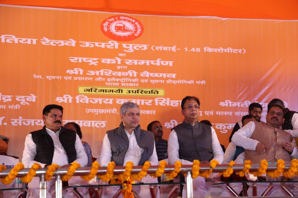 श्री अश्विनी वैष्णव, माननीय रेल, सूचना एवं प्रसारण और इलेक्ट्रॉनिकी एवं सूचना प्रौद्योगिकी मंत्री, भारत सरकार द्वारा बेतिया में समपार सं. 02 पर नवनिर्मिति सड़क उपरि पुल का राष्ट्र को समर्पण