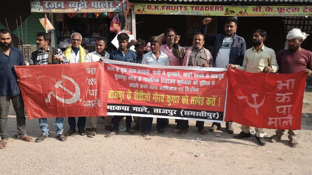 थूककांड के आरोपी ताजपुर बीडीओ पर कारवाई की मांग को लेकर भाकपा माले ने निकाला विरोध मार्च