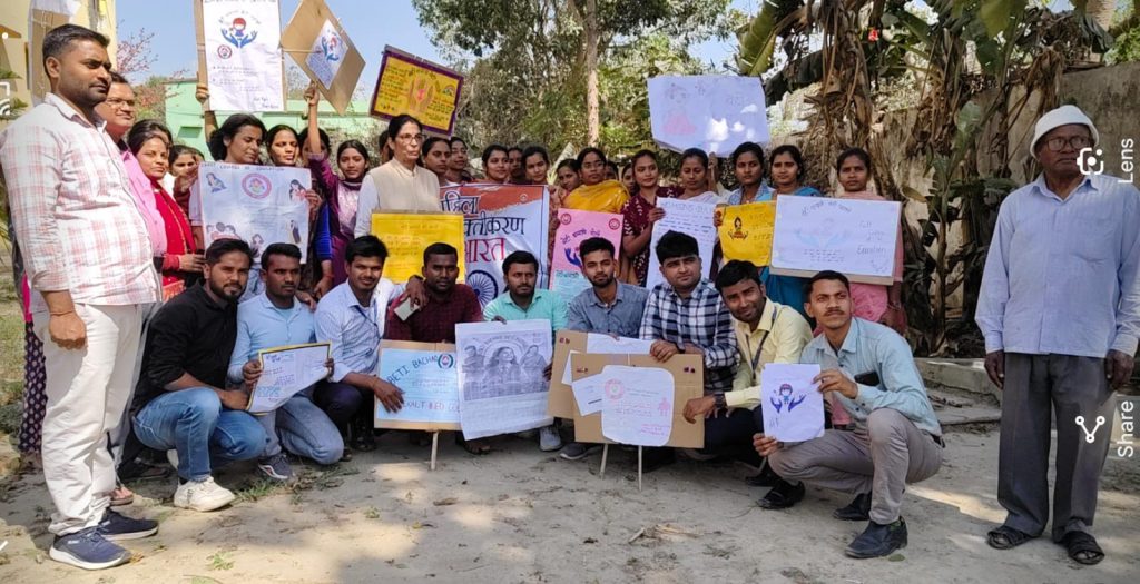 महुआ कन्हौली में बेटी बचाओ बेटी पढ़ाओ को लेकर रैली में शामिल एक्ज्लट ग्रुप ऑफ़ इंस्टिट्यूशन की छात्र-छात्राएं