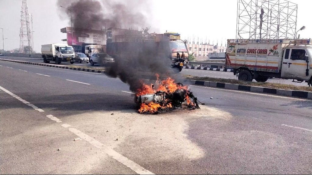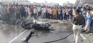 हाजीपुर मुजफ्फरपुर मुख्य मार्ग एनएच 22 गोरौल चौक स्थित ओभर ब्रिज के डिवाइडर से एक बुलेट सवार टकरा गया । साथ ही साथ बाइक में आग लग गई , इस घटना में बाइक सवार की मौत हो गई एवं बाइक बुरी तरह जल गया। घटना के बाद एनएच में अफरातफरी मच गया और आधे घंटे तक पश्चिमी लैन जाम रहा। घटना की सूचना मिलते थानाध्यक्ष रौशन कुमार,अपर थानाध्यक्ष प्रशांत कुमार, सब इंस्पेक्टर अभय शंकर सिंह , शैलेन्द्र कुमार ने पुलिस बल एवं अग्निशमन दल के साथ घटना स्थल पर पहुंच जल रही बाइक के आग पर काबू पाया । साथ ही स्थानीय लोगों के सहयोग से घायल बाइक सवार को प्राथमिक स्वास्थ्य केंद्र में भर्ती कराया गया। जहां डॉक्टरों ने जांचोपरांत उसे मृत घोषित कर दिया। मृतक की पहचान बेतिया जिले में पदस्थापित पुलिस सब इंस्पेक्टर के रूप में की गयी है। पुलिस की सूचना पर मृतक के परिजन आये। तब पुलिस ने शव को पोस्टमार्टम हेतु हाजीपुर भेज दिया।