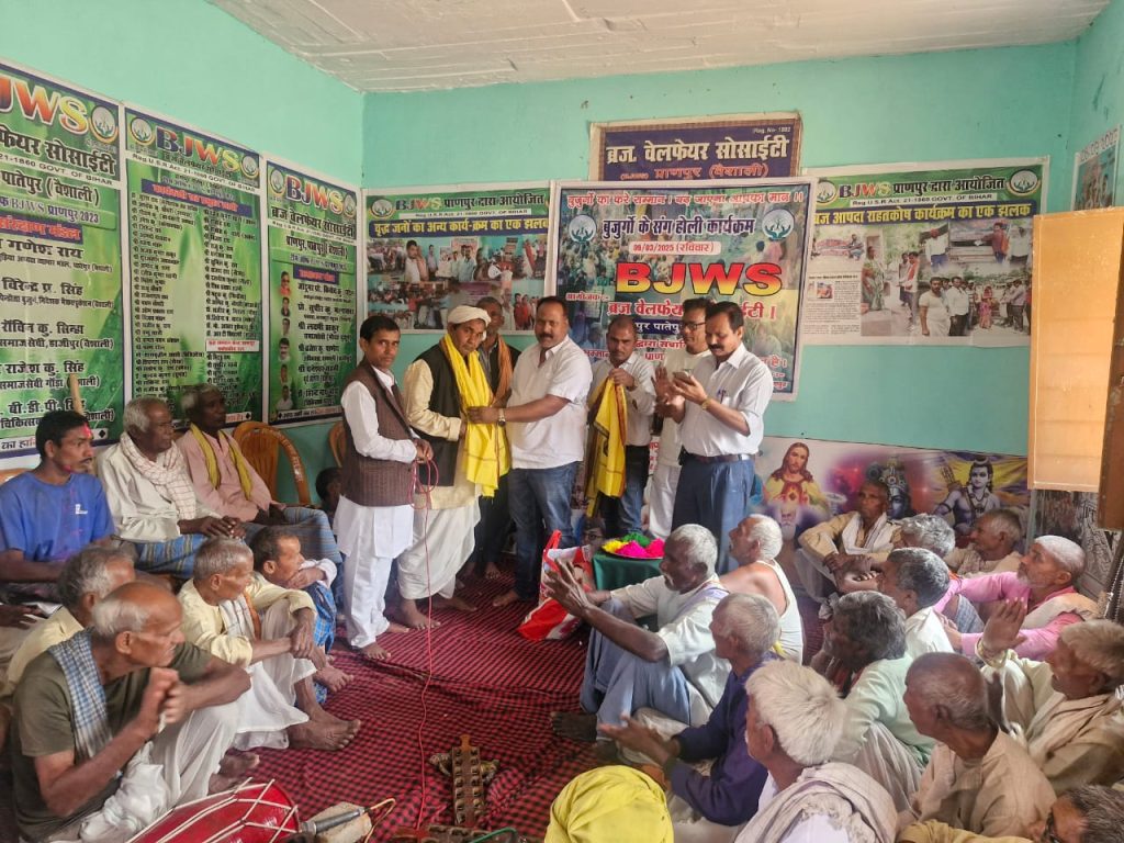 पातेपुर ( वैशाली) प्रखंड के प्राणपुर गांव में बी जे डब्लू एस स्वयंसेवी संस्था द्वारा संचालित वृद्ध सम्मान केंद्र , प्राणपुर में वृद्धों के बीच होली मिलन समारोह का भव्य आयोजन किया गया।हर वर्ष की तरह इस वर्ष भी होली मिलन संस्था के संस्थापक सचिव डॉ सुरेश राय के नेतृत्व में बुजुर्गों के संग होली कार्यक्रम भाव रूप से आयोजन किया गया ।कार्यक्रम में मुख्य रूप से संस्था के संरक्षक सह व्यापार मंडल अध्यक्ष गणेश राय , संरक्षक वीरेंद्र प्रसाद सिंह , संरक्षक राजेश कुमार सिंह , सलाहकार मंडल सदस्य लक्ष्मी ठाकुर , (मुखिया, मौदह बुजुर्ग ) स्थानीय मुखिया राजीव कुमार चौधरी राजू ,कार्यकारी अध्यक्ष गौतम कुमार सक्रिय साथी प्रेम सागर , अजंत कुमार ठाकुर , संस्था के दूसरे शाखा मौदह बुजुर्ग से डॉ देवेंद्र सिंह के साथ- साथ बड़ी संख्या में बुजुर्ग , वृद्ध सम्मान केंद्र के सैकड़ो वृद्धजन एवं सेवा दल के साथी के द्वारा कार्यक्रम का सफल आयोजन किया गया ।कार्यक्रम में बुजुर्गों को अंग वस्त्र से सम्मानित करते हुए अनेक प्रकारों का व्यंजन के साथ प्रसाद ग्रहण करते हुए सभी लोग गुलाल के साथ मस्ती में होली के गीतों का आनंद लिया।