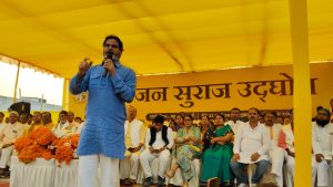 महुआ (वैशाली) जन सुराज के सूत्रधार प्रशांत किशोर महुआ के ऐतिहासिक गांधी मैदान में महती जनसभा को संबोधित करते हुए कहा कि अभी तक आप लोग 5 किलो अनाज ,मंदिर मस्जिद, जात-पात के नाम पर वोट करते आए हैं।अपने बाल बच्चों को चेहरा देखकर कभी वोट नहीं किया है, जिसके कारण नेता का बेटा नेता बनता जा रहा है और आपका बेटा मजदूर बनकर गुजरात में मजदूरी करता है। यह दोहरी मानसिकता नहीं चलने वाला है ,इसलिए आने वाले दिनों में बिहार विधानसभा चुनाव में चाचा भतीजा की सरकार को बाहर करना है, तभी जाकर आपके बाल बच्चों का भविष्य सुधरेगा ।उन्होंने पांच मंत्र दिया जिससे कि बिहार के युवाओं को पलायन को रोकने में कारगर साबित होगा। सभा की अध्यक्षता संगठन जिला अध्यक्ष इंद्रजीत प्रधान ,जबकि संचालन जिला मुख्य प्रवक्ता सुधीर मालाकार एवं धनंजय सिंह ने की। समारोह को संबोधित करने वाले में जिला अध्यक्ष ठाकुर इंदु भूषण सिंह, महिला अध्यक्ष श्रीमती अलका सिंह ,पिंकी विप्लवी ,राकेश रंजन ,प्रवीण कुमार और पप्पू सिंह ,अवधेश पासवान ,राजदेव ठाकुर ,संजू ठाकुर, संरक्षक चंद्रदेव सिंह ,राम नारायण सिंह , सर्वेश कुमार,जिला परिषद उपाध्यक्ष मनोज राय, जिला प्रभारी मनोज यादव, जिला परिषद अध्यक्ष आशुतोष कुमार, जिला अध्यक्ष जयप्रकाश चौधरी, डॉ विनय पासवान, अमर कुमार सिंह,प्रमोद झा,मनोज गुप्ता , बंटी मिश्रा,रणजीत मिश्रा सहित अन्यलोक शामिल है वैशाली आगमन प्रशांत किशोर को हाजीपुर से महुआ मार्ग में विभिन्न जगहों पर फूल मालाओं से भव्य स्वागत किया गया वहीं महुआ के गांधी मैदान में उमड़े जन सैलाब को देखकर प्रशांत किशोर की गदगद मजा आए।