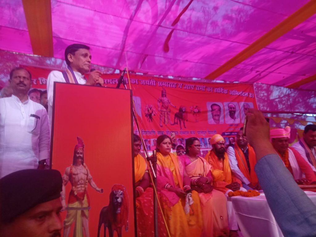 पातेपुर ( वैशाली) पातेपुर रामचंद्र उच्च विद्यालय के प्रांगण में शनिवार को शिरोमणि बाबा बीर चौहरमल की जयंती धूमधाम से मनाई गई।जयंती समारोह में मुख्य अतिथि केंद्रीय गृह राज्यमंत्री नित्यानंद राय ने कहा कि बाबा वीर चौहरमल की जयंती पर हम सब संकल्प लें कि उनके आदर्श पार चलें।वह अन्याय और अत्याचार के खिलाफ जीवन भर संघर्ष करते रहे।उन्होंने पातेपुर विधानसभा से आए लोगों से कहा कि यहां के विधायक लखेंद्र पासवान ने विकास की किरण हर गांव में पहुंचाई है।बिजली,सिंचाई,सड़क और पानी जैसे समस्याओं को विधायक ने गांव गांव तक पहुंचने का काम किया है।विधायक ने हर वर्गों के बीच कार्य किया है। मंत्री श्री राय और विधायक ने बाबा बीर शिरोमणि चौहरमल के चित्र पर पुष्पांजलि अर्पित की।कार्यक्रम के शुरुआत में समारोह को संबोधित करते हुए विधायक लखेंद्र पासवान ने मंत्री नित्यानंद राय का स्वागत किया।उन्हें पाग और तलवार भेंट कर सम्मानित किया गया। विधायक ने जयंती में शामिल हुए लोगों को बाबा साहब के संविधान को समझाते हुए अपने बच्चों को पढ़ाने और लिखाने के लिए प्रेरित किया।समारोह में तलवार उठाने वाले लोगों से कहा कि एक हाथ में बाबा साहब का संविधान को लें और दूसरे हाथ में तलवार उठाएं।शोषित,पीड़ित और दलित के साथ कोई अन्याय नहीं हो।उसकी रक्षा करें।वहीं संविधान के द्वारा दिए गए अधिकार का इस्तेमाल करें।उन्होंने कहा कि बाबा वीर चौहरमल साहब के सपने को साकार करने के लिए शिक्षा जरूरी है।शिक्षित बनके ही हम बाबा वीर चौहरमल के वसूलों को कायम रख सकेंगे। समारोह की अध्यक्षता मनोज पासवान और संचालन संजय दास ने किया।इस अवसर पर जयप्रकाश पासवान,भाग्यनारायण पासवान,विशेश्वर भारती,विश्वनाथ पासवान, डॉ बिंदेश्वर पासवान,अनिल पासवान,कैलाश पासवान,हरेंद्र पासवान,मुखिया शंकर पासवान,चंदेश्वर पासवान,अजबलाल साह,दिनेश साह,दिनेश राय, अशर्फी सहनी,अनिल सिंह,मुखिया दिलीप सिंह,इंद्रजीत सिंह,श्रवण पटेल सहित अन्य गण्यमान व्यक्ति उपस्थित थे।