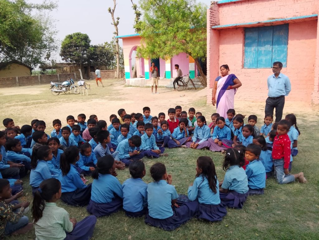 महादलित टोलों के साथ स्कूली बच्चों को एईएस/जेई से बचाव हेतु सचेत कर रहीं है आशा संजू कुमारी